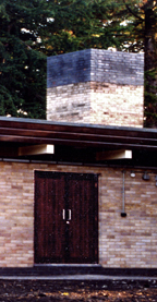 | Youth Training Centre Built in Aston Clinton, Bucks, this youth centre had been laid out as a series of discrete buildings in the grounds of a demolished country house. Pictured is the new boiler house conceived as a free standing object in the park, distinct from, yet similar to, the surrounding older structures. |